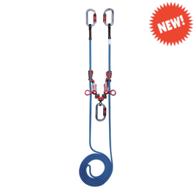 Uma longe dupla exclusiva para o arborismo. O Gyro Lanyard Double combina dois sistemas de ajuste de comprimento num único ponto de conexão com o inovador dispositivo giratório Gyro 3.